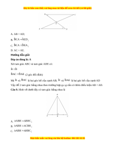 ủ tam giác kia thì hai tam giác đó b ng ằ nhau. Hư ng d ớ ẫn gi i ả Đáp án đúng là: D Trư ng h ờ p b ợ ng ằ nhau c nh – c ạ nh – c ạ nh ạ c a hai ủ tam giác là: N u ế 3 c nh ạ c a ủ tam giác này b ng ằ 3 c nh ạ c a