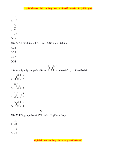 Đây là bản xem th , vu ử i lòng mua tài li u ệ đ xe ể m chi ti t (c ế ó l i ờ gi i ả ) 4 B. 5 5 C. 4 5 D. 4 Câu 5: Số t nhi ự ên x th a