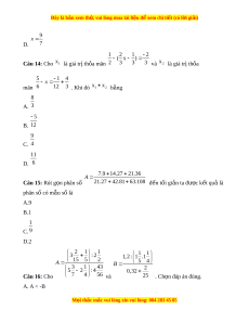 D. Không có phân số nào th a m ỏ ãn. 3 1 3 1 Câu 9: Tính 5 6 23 4 A. 30 23 5 B. 30 23 2 C. 30 23 3 D. 30 6 12