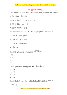 Câu 1. Cho f(x) = x2 – 4. Tìm kh ng ẳ đ nh ị sai trong các kh ng đ ẳ nh s ị au đây