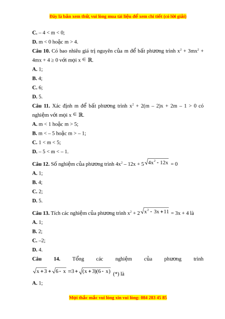 Đây là bản xem th , vu ử i lòng mua tài li u ệ đ xe ể m chi ti t ế (có l i ờ gi i ả ) C. – 4 < m < 0; D. m < 0 ho c m ặ > 4.