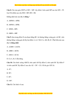 Câu 10. Cho hình vuông ABCD, trên cạnh AD lấy điểm E, trên cạnh DC lấy điểm F