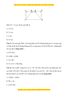 Câu 9. Qua trung điểm H của đoạn thẳng BC, kẻ đường thẳng vuông góc với BC, trên