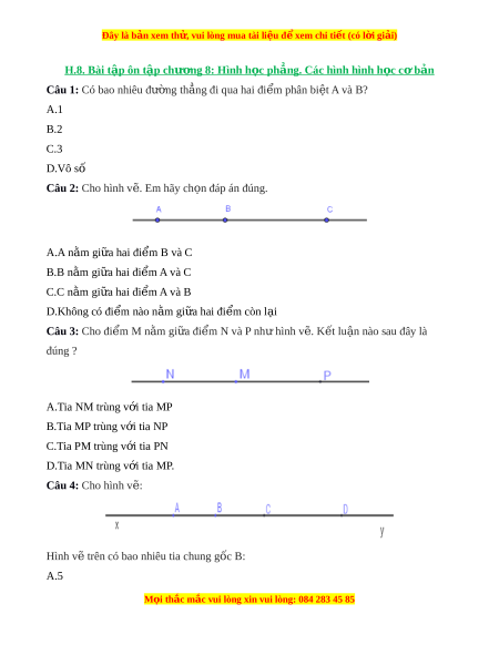 Đây là bản xem th , vu ử i lòng mua tài li u ệ đ xe ể m chi ti t (c ế ó l i ờ gi i ả ) H .8. B ài tập ôn t p ch ậ ư ng 8 ơ : Hình h c ph ọ ng. C ẳ ác hình hình h c c ọ b ơ n ả