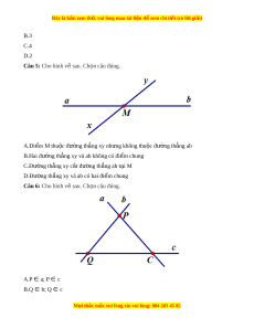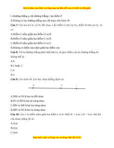 Câu 8: Vẽ ba đư ng t ờ h ng ẳ phân bi t ệ b t ấ kì, s gi ố ao đi m ể c a ủ ba đư ng t ờ h ng ẳ đó không th l ể à: A.0 B.1 ho c ặ 2 C.4 D.3
