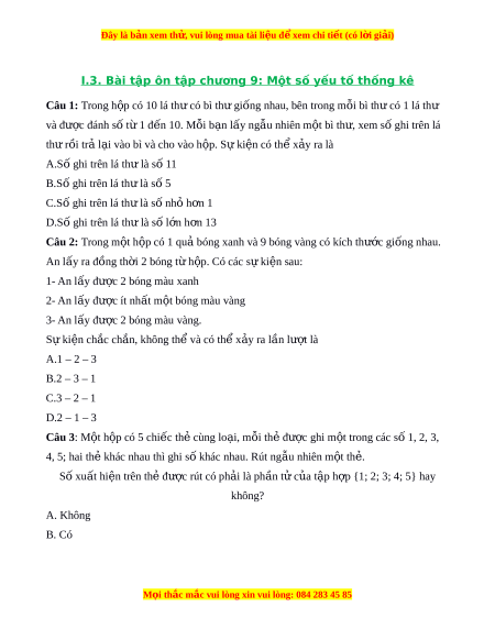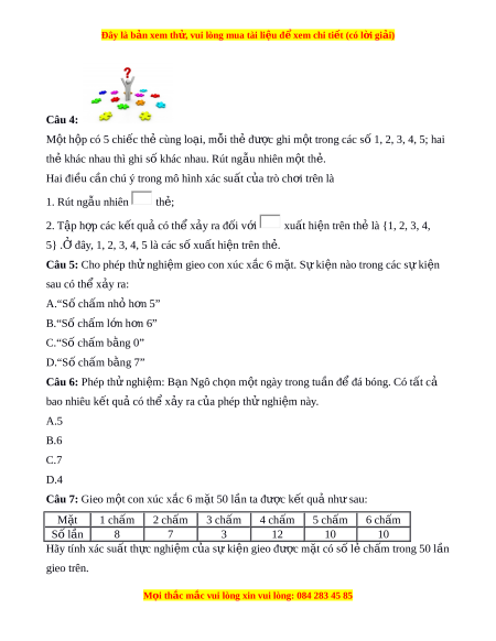 Đây là bản xem th , vu ử i lòng mua tài li u ệ đ xe ể m chi ti t (c ế ó l i ờ gi i ả ) Câu 4: M t ộ h p có 5 chi ộ c ế th cùng l ẻ o i ạ , mỗi th đ ẻ ư c ợ ghi m t