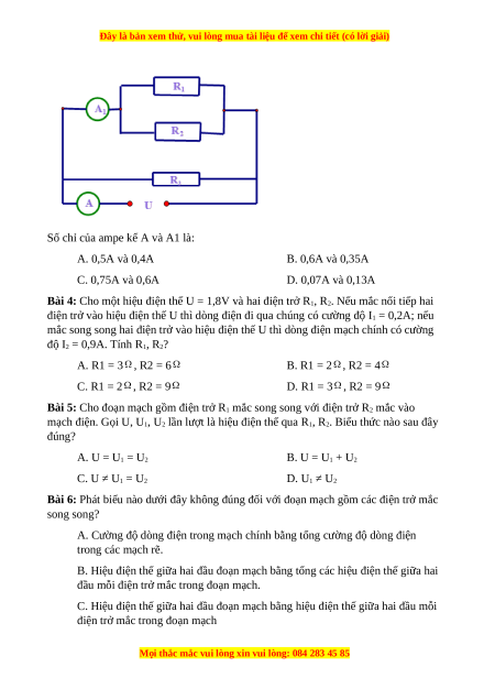 Bài 6: Phát biểu nào dưới đây không đúng đối với đoạn mạch gồm các điện trở mắc
