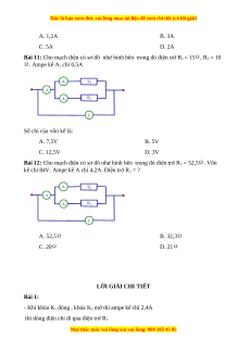 Bài 12: Cho mạch điện có sơ đồ như hình bên trong đó điện trở R1 = 52,5 . Vôn
