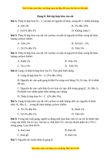 Dạng 8: Bài tập hợp kim của sắt