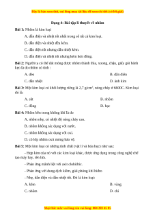 Dạng 4: Bài tập lí thuyết về nhôm