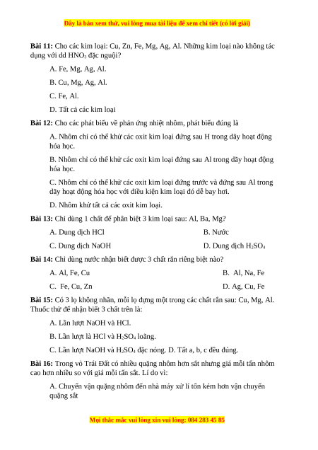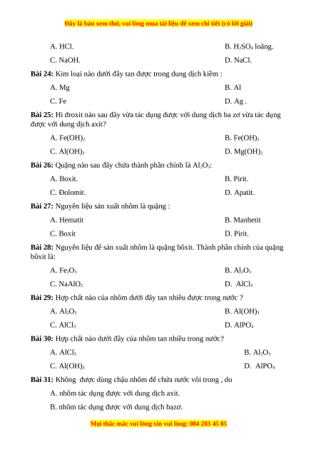 Đây là bản xem thử, vui lòng mua tài liệu để xem chi tiết (có lời giải)