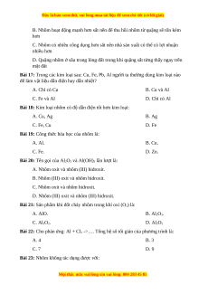 Bài 18: Kim loại nhôm có độ dẫn điện tốt hơn kim loại: A. Cu, Ag B. Ag C. Fe, Cu D. Fe