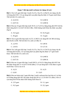 Dạng 7: Bài tập muối cacbonat tác dụng với axit