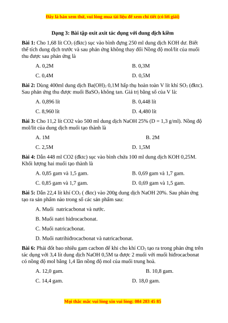 Dạng 3: Bài tập oxit axit tác dụng với dung dịch kiềm