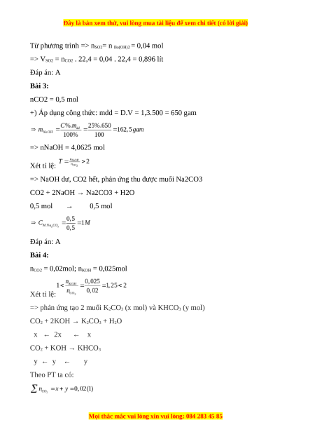 Bài 4: Dẫn 448 ml CO2 (đktc) sục vào bình chứa 100 ml dung dịch KOH 0,25M.