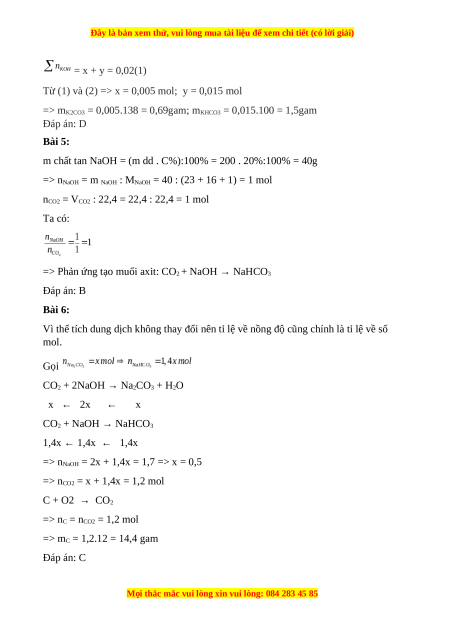 Bài 7: Cho 4,48 lít CO2 (đktc) đi qua 190,48ml dung dịch NaOH 2% có khối lượng