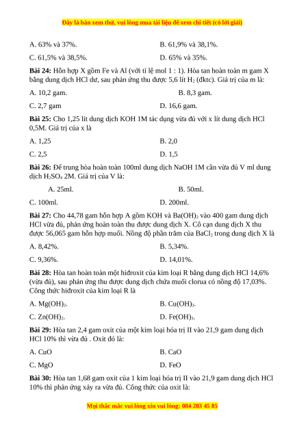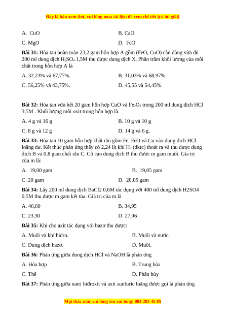 Đây là bản xem thử, vui lòng mua tài liệu để xem chi tiết (có lời giải)