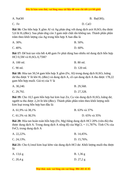 Đây là bản xem thử, vui lòng mua tài liệu để xem chi tiết (có lời giải)