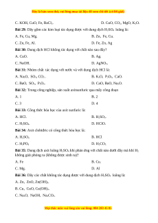 Bài 28: Cho các dãy chất dưới đây, dãy chất nào tác dụng được với dung dịch axit sunfuric loãng? A. CuO, Cu, K2O, CO. B. SO2, CuO, Fe, CO2.
