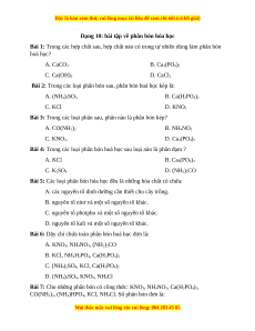 D. Ca3(PO4)2 chỉ chứa nguyên tố P => là phân bón đơn Đáp án: C Bài 4:
