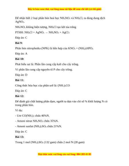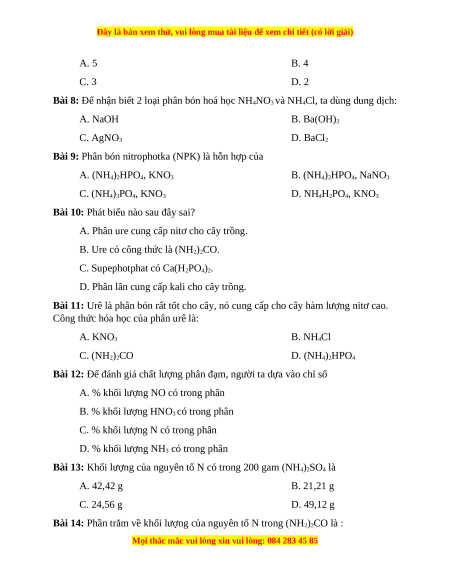 Đây là bản xem thử, vui lòng mua tài liệu để xem chi tiết (có lời giải)