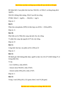 Bài 15: Trong các loại phân bón sau, loại phân bón nào có lượng đạm cao nhất ? A. NH4NO3 B. NH4Cl C. (NH4)2SO4 D. (NH2)2CO