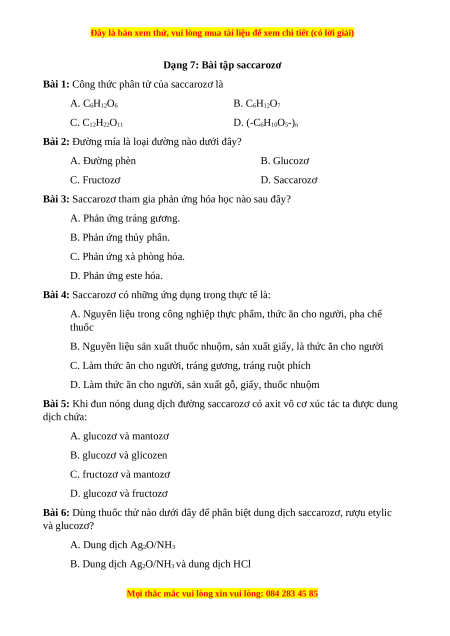 Glucozơ Fructozơ Đáp án: D Bài 6: