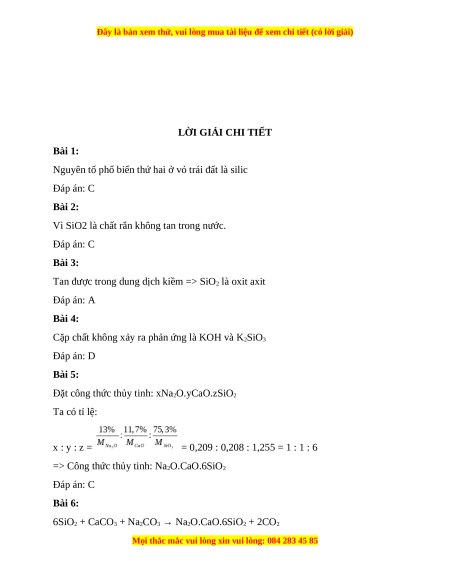 => Công thức thủy tinh: Na2O.CaO.6SiO2 Đáp án: C Bài 6: