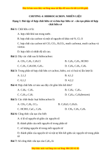 Bài 2: Dãy các chất sau là hiđrocacbon: A. CH4, C2H2, C2H5Cl B. C6H6, C3H4, HCHO C. C2H2, C2H5OH, C6H12 D. C3H8, C3H4, C3H6