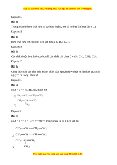 Bài 8: Số công thức cấu tạo mạch hở có thể có của C4H8 là A. 3 B. 4 C. 5 D. 6