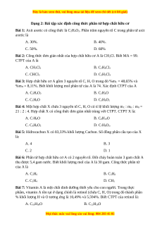 Dạng 2: Bài tập xác định công thức phân tử hợp chất hữu cơ