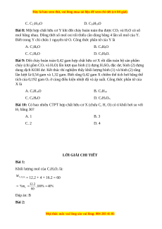 Bài 10: Có bao nhiêu CTPT hợp chất hữu cơ X (chứa C, H, O) có tỉ khối hơi so với H2 bằng 30? A. 1 B. 3 C. 2 D. 4 LỜI GIẢI CHI TIẾT Bài 1: