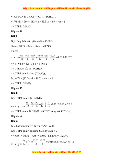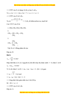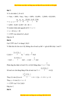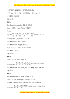 => CTPT của X là C7H8O (vì CTPT trùng với CTĐGN) Đáp án: A Bài 5: