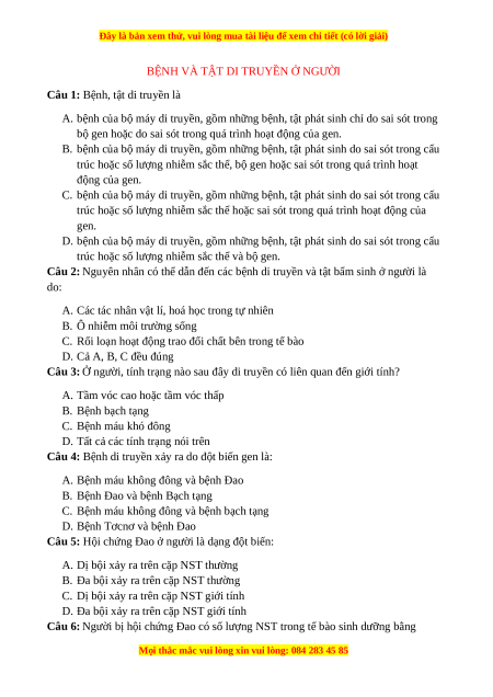 Đây là bản xem thử, vui lòng mua tài liệu để xem chi tiết (có lời giải)