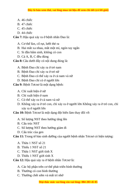 Câu 6: Người bị hội chứng Đao có số lượng NST trong tế bào sinh dưỡng bằng