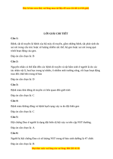 Bệnh máu khó đông di truyền có liên quan đến giới tính Đáp án cần chọn là: C Câu 4: