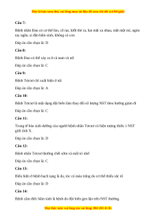 Câu 11: Trong tế bào sinh dưỡng của người bệnh nhân Tơcnơ có hiện tượng: A. Thừa 1 NST số 21 B. Thiếu 1 NST số 21 C. Thừa 1 NST giới tính X