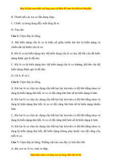 ợ qua nó lò xo không còn gi ữ đư c ợ tính đàn h i ồ c a ủ lò xo n a. ữ D. Cả A, B và C. Câu 3: V t ậ nào dư i ớ đây bi n ế d ng kéo? ạ A. Tr c ụ ầu. B. Móng nhà. C. Dây cáp c a c ủ n c ầ u đang chuy ẩ n ể hàng. D. C t ộ nhà. Câu 4: V t ậ nào dư i ớ đây bi n ế d ng nén? ạ A. Dây cáp c a ủ c u t ầ reo. M i