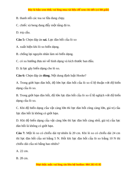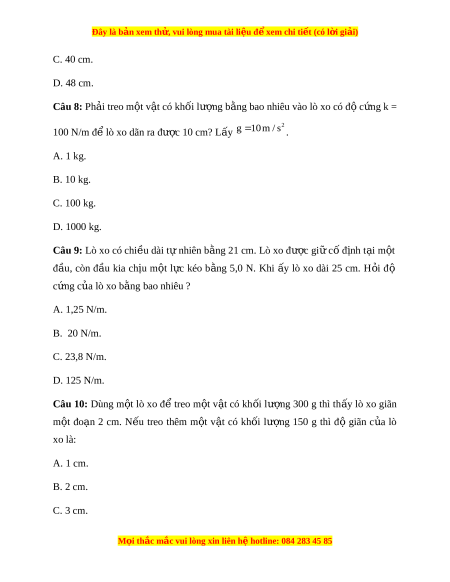 Đây là bản xem th , vu ử i lòng mua tài li u ệ đ xe ể m chi ti t (c ế ó l i ờ gi i ả ) C. 40 cm. D. 48 cm. Câu 8: Ph i ả treo m t ộ v t ậ có kh i ố lư ng b ợ ng