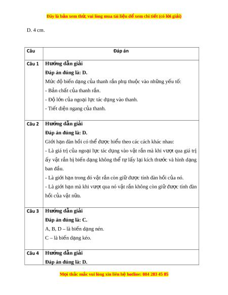 Đây là bản xem th , vu ử i lòng mua tài li u ệ đ xe ể m chi ti t (c ế ó l i ờ gi i ả ) D. 4 cm. Câu Đáp án Câu 1 Hư ng d ớ ẫn gi i ả