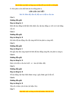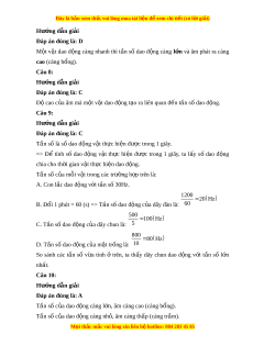 ớ và âm phát ra càng cao (càng bổng). Câu 8: Hư ng ớ d n gi ẫ i ả Đáp án đúng là: C Đ cao c ộ a ủ âm mà m t ộ v t ậ dao đ ng t ộ o r ạ a liên quan đ n ế t n s ầ dao ố đ ng. ộ Câu 9: Hư ng ớ d n gi ẫ i ả Đáp án đúng là: C