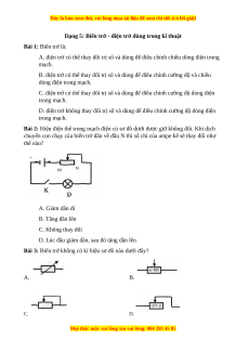 Dạng 5: Biến trở - điện trở dùng trong kĩ thuật