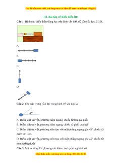 Đây là bản xem th , vu ử i lòng mua tài li u ệ đ xe ể m chi ti t ế (có l i ờ gi i ả ) H2. Bài tập v bi ề u di ể n l ễ c ự Câu 1: Hình nào bi u ể di n ễ đúng l c t ự rên hình v , bi ẽ t ế đ l ộ n c ớ a l ủ c l ự à 3 N. A. B. C. D. Câu 2: Các đ c ặ tr ng c ư a ủ l c t ự rong hình v s ẽ au đây là: A. Đi m ể đ t ặ t i ạ v t ậ , phư ng n ơ m ằ ngang, chi u t ề t ừ rái qua ph i ả B. Đi m ể đ t ặ t i ạ v t ậ , phư ng n ơ m ằ ngang, chi u t ề ph ừ i ả qua trái C. Đi m ể đ t ặ t i ạ v t ậ , phư ng xi ơ ên t o v ạ i ớ m t ặ ph ng ngang ẳ góc 450, chi u ề t ừ dư i ớ lên trên. D. Đi m ể đ t ặ t i ạ v t ậ , phư ng xi ơ ên t o v ạ i ớ m t ặ ph ng ẳ ngang góc 450, chi u t ề ừ trên xuống dư i ớ Câu 3: Mô t b ả ng ằ l i ờ phư ng và chi ơ u ề c a l ủ c t ự rong hình v : ẽ M i