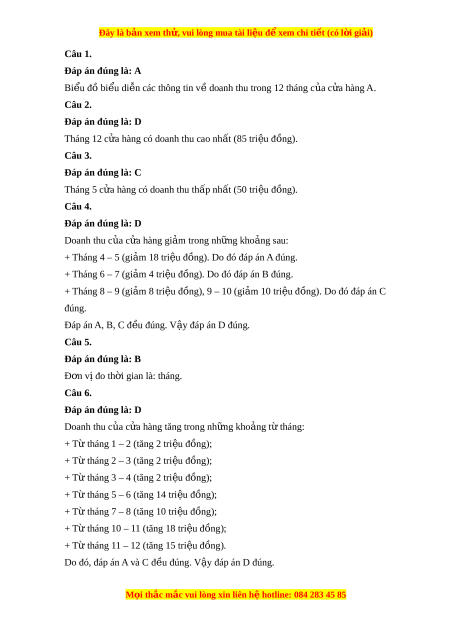 Đây là bản xem th , vu ử i lòng mua tài li u ệ đ xe ể m chi ti t ế (có l i ờ gi i ả ) Câu 4. Doanh thu c a ủ c a ử hàng gi m ả trong nh ng ữ kho ng ả th i ờ gian nào? A. 4 – 5; B. 6 – 7; C. 8 – 9 ; 9 – 10;