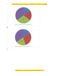 ạ tròn dùng để so sánh gi a các ph ữ n t ầ rong d l ữ i u ệ ; B. Trong bi u đ ể ồ hình qu t ạ tròn, ph n chí ầ nh là hình tròn bi u di ể n d ễ ữ li u đ ệ ư c ợ chia thành nhi u hì ề nh qu t ạ đư c ợ tô màu khác nhau; C. Cả hình tròn ng v ứ i ớ 200%; D. Tất cả đ u s ề ai. Hư ng d ớ ẫn gi i ả Đáp án đúng là: B Trong bi u ể đồ hình qu t ạ tròn, ph n chí ầ nh là hình tròn bi u di ể n ễ d l ữ i u đ ệ ư c ợ chia thành nhi u hì ề nh qu t ạ đư c ợ tô màu khác nhau. V y ậ ch n đáp án ọ B. Câu 2. Cho bi u đ ể ồ M i