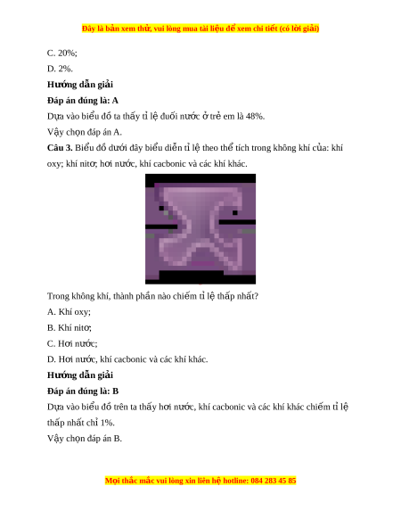 Đây là bản xem th , vu ử i lòng mua tài li u ệ đ xe ể m chi ti t (c ế ó l i ờ gi i ả ) C. 20%; D. 2%. Hư ng d ớ ẫn gi i ả Đáp án đúng là: A D a ự vào bi u đ ể ồ ta th y t ấ l ỉ đu ệ i ố nư c ớ t ở r em ẻ là 48%. V y ậ ch n đáp án ọ A. Câu 3. Bi u ể đồ dư i ớ đây bi u di ể n t ễ ỉ l t ệ heo th t