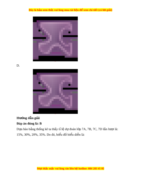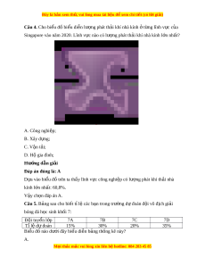 Singapore vào năm 2020. Lĩnh v c nào có l ự ư ng ợ phát th i ả khí nhà kính l n nh ớ t ấ ? Object 7 A. Công nghi p ệ ; B. Xây d ng; ự C. V n ậ t i ả ; D. Hộ gia đình; Hư ng d ớ ẫn gi i ả Đáp án đúng là: A D a ự vào bi u đ ể ồ trên ta th y l ấ ĩnh v c công nghi ự p có l ệ ư ng ợ phát khí th i ả nhà kính l n nh ớ ất: 60,8%. V y ậ ch n đáp án ọ A. Câu 5. B ng s ả au cho bi t ế tỉ l các ệ b n t ạ rong trư ng ờ d đoán đ ự i ộ vô đ ch gi ị i ả bóng đá h c ọ sinh khối 7: Đ i ộ tuy n l ể p ớ 7A 7B 7C 7D Tỉ lệ d đoán ự 15% 30% 20% 35% Bi u ể đồ nào dư i ớ đây bi u di ể n b ễ ng ả th ng kê ố này? A. M i