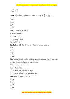 Câu 6. Mẫu số nhỏ nhất khi quy đồng các phân số và là 16 24 A. 24 B. 48 C. 96 D. 16