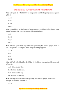 CÁC DẠNG BÀI TẬP NGUYÊN PHÂN VÀ GIẢM PHÂN