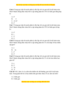 Câu 17: Trong quy luật di truyền phân ly độc lập với các gen trội là trội hoàn toàn.